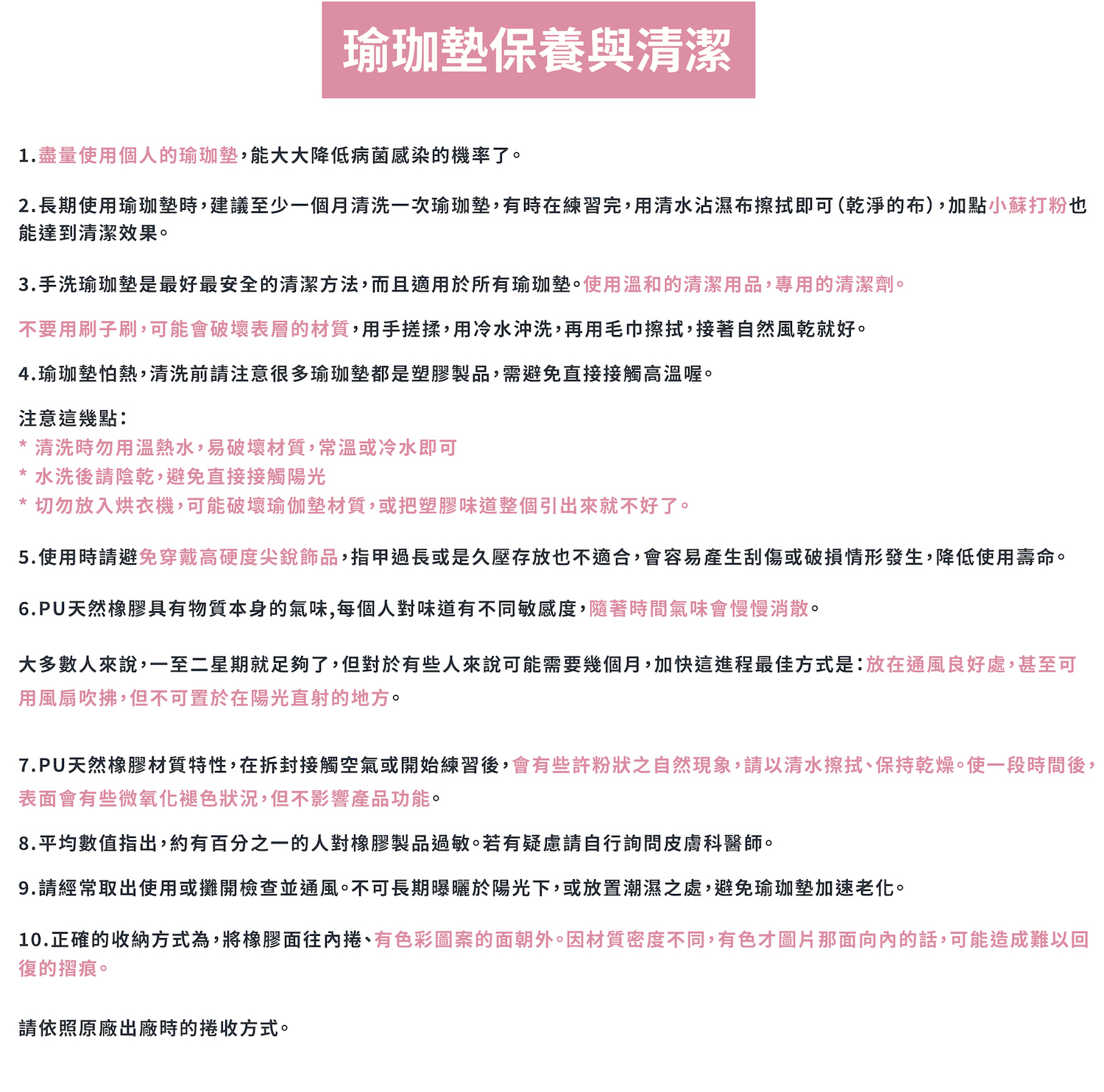 瑜珈墊保養與清潔