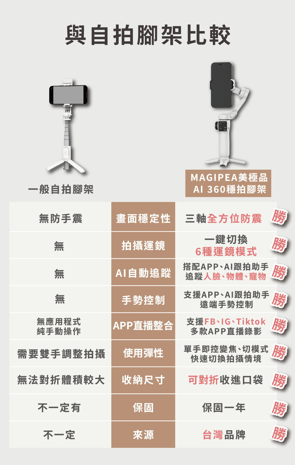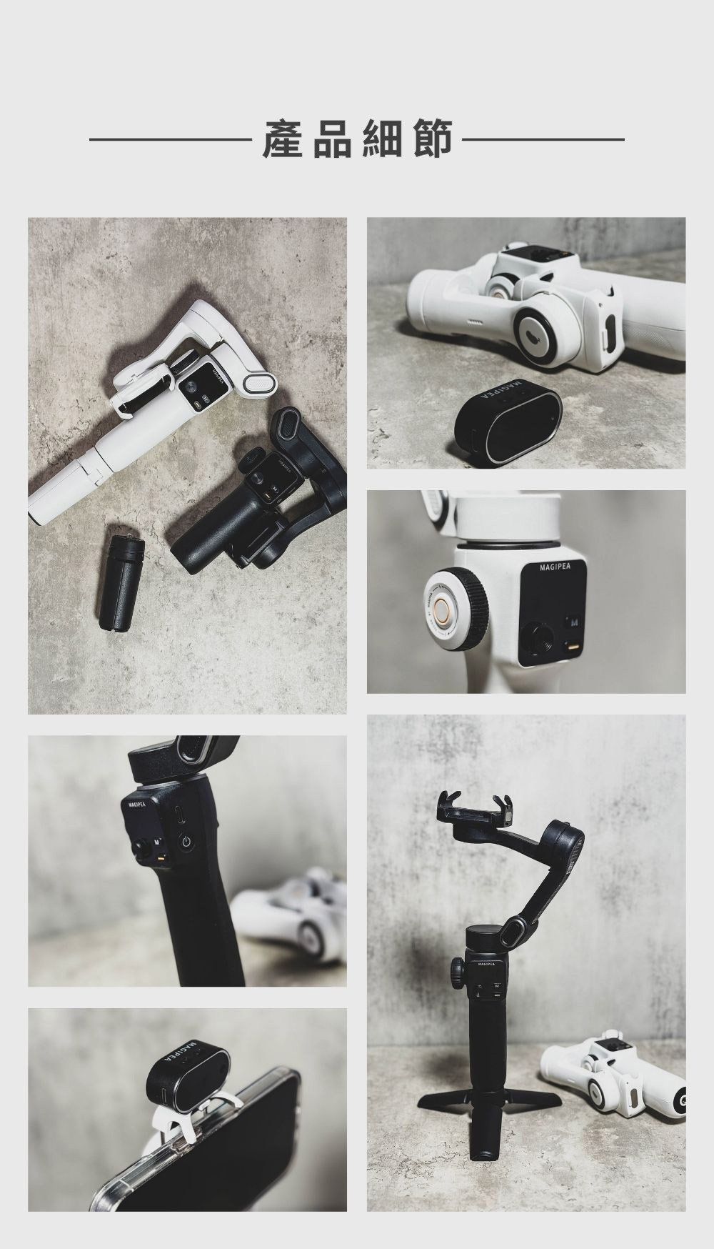 · 磁吸式手機夾,支援補光燈與AI跟拍助手