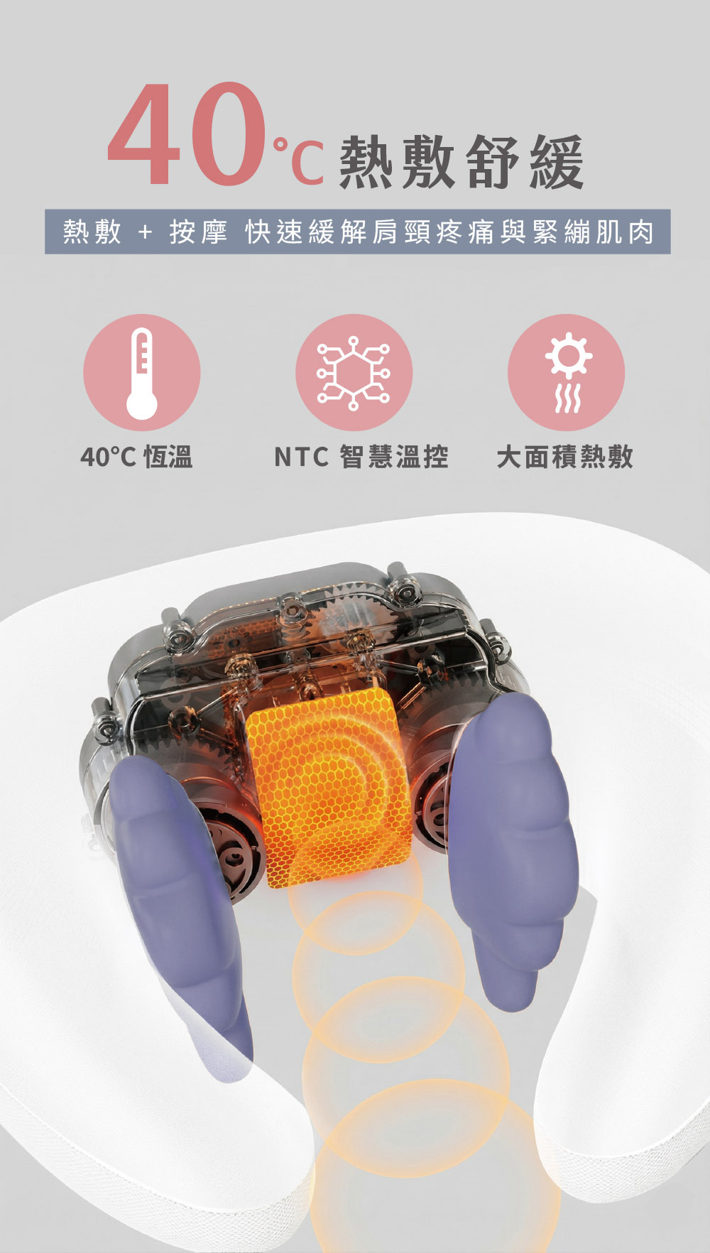 .40°C 恆溫紅光熱敷|先溫熱軟化再揉捏,加速紓解痠痛