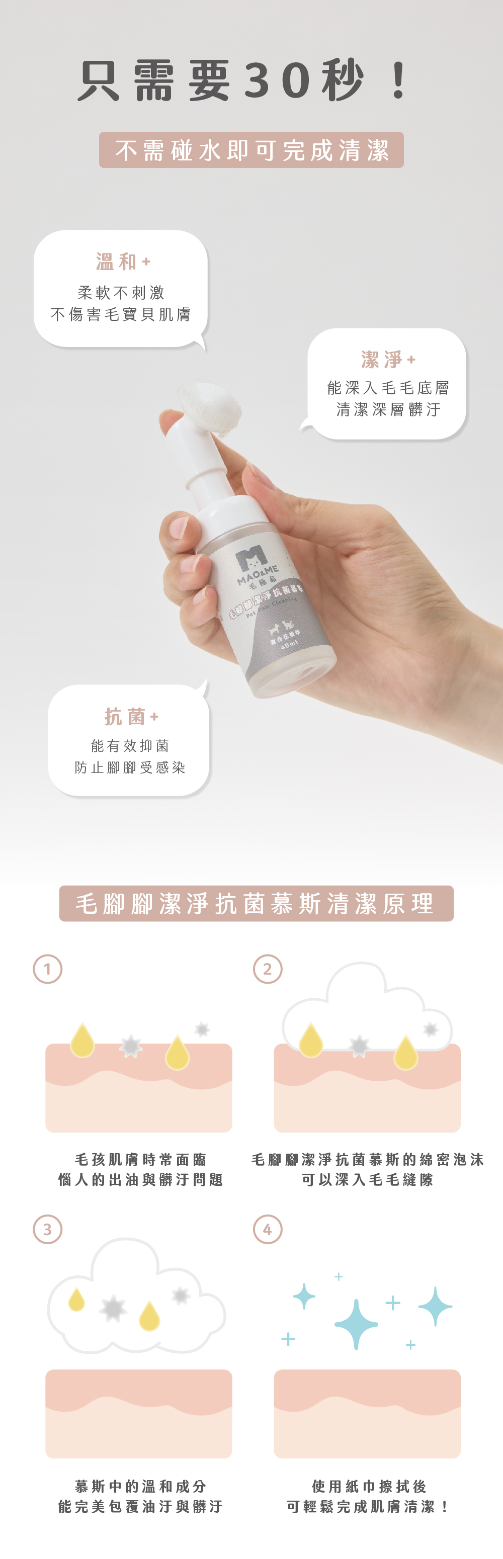 .溫和的綿密泡泡能深層清潔毛髮與肌膚