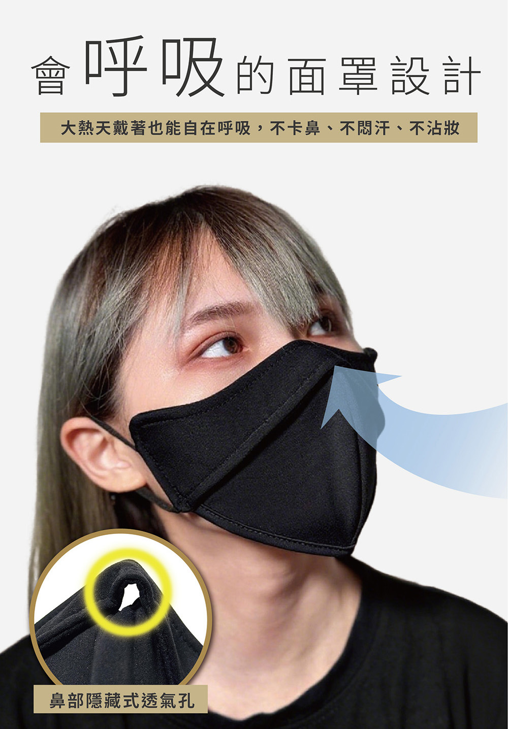 .鼻樑內建 PP支撐材質,3D立體不貼臉